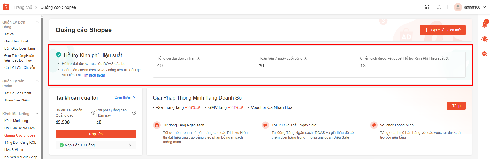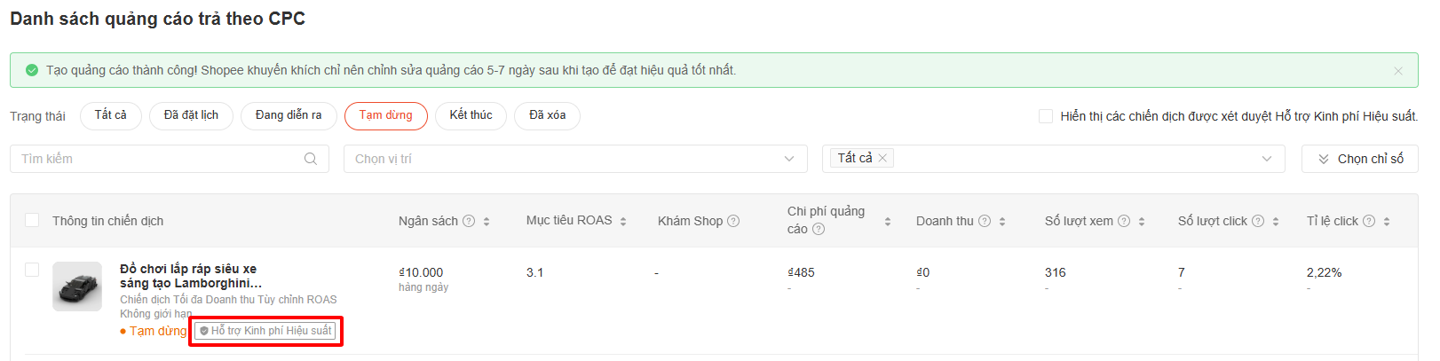 Tạo ngay chiến dịch Tối đa Doanh thu Tùy chỉnh ROAS tại: https://banhang.shopee.vn/portal/marketing/pas/product/create